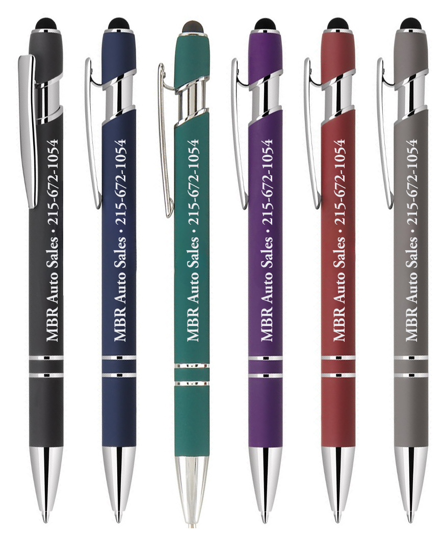 - Our Custom Laser Engraved Chester Stylus Soft Touch Metal Retractable Ballpoint Pens feature a durable and stylish rubberized metal barrel and are offered in four attractive colors with a bright chrome clip and trim.