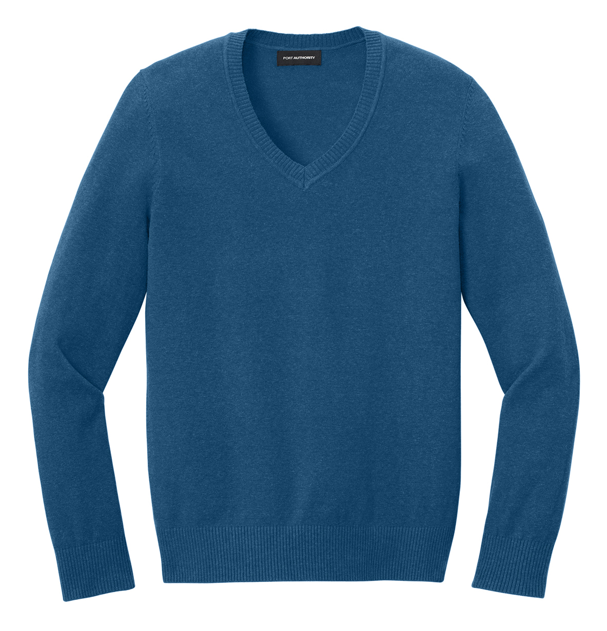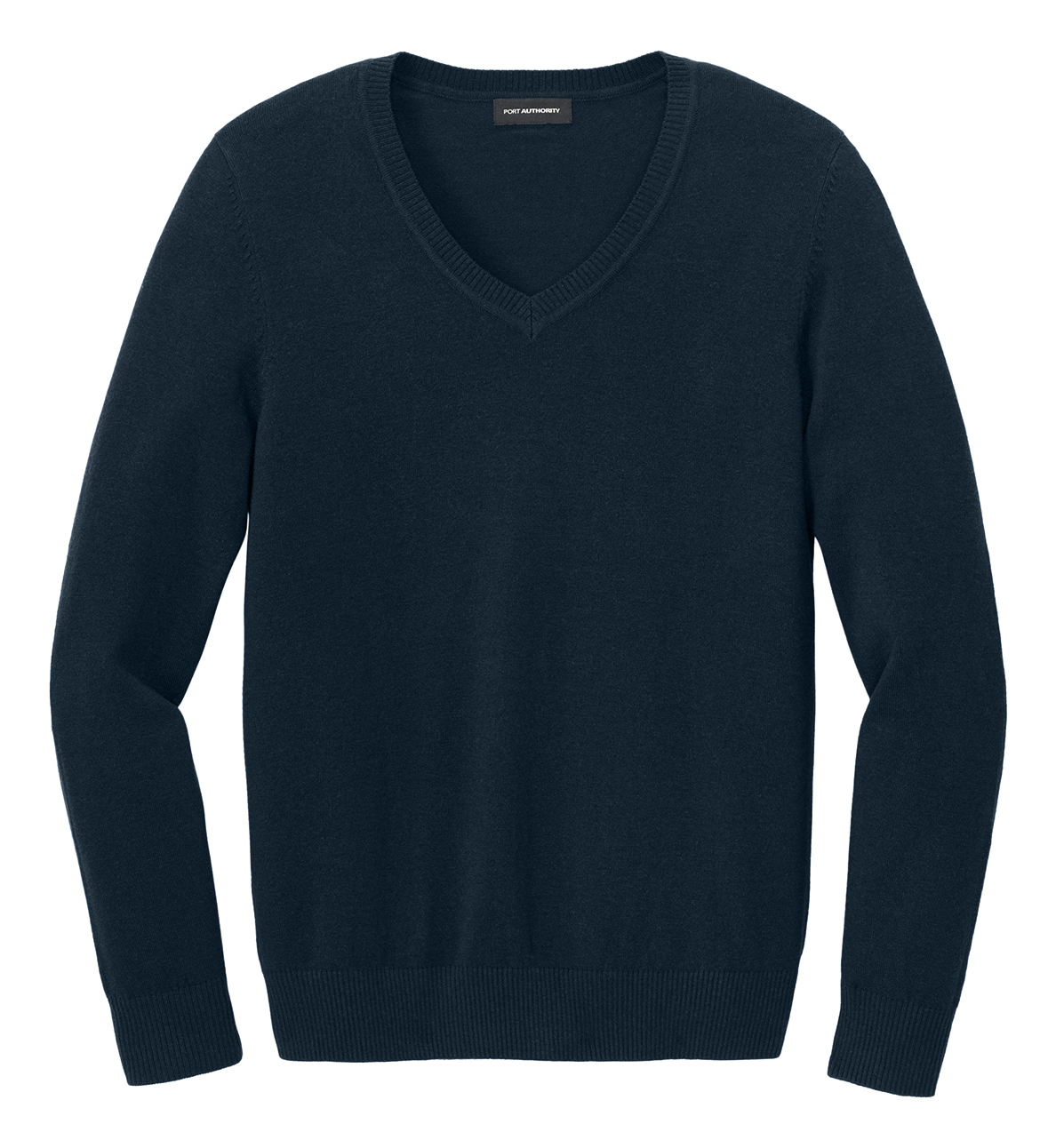 - These Custom Embroidered Port Authority Ladies Easy Care V-Neck Sweaters offer a blend of professionalism and supreme comfort. This beautiful tri-blend sweater is an exceptional addition to any work wardrobe.