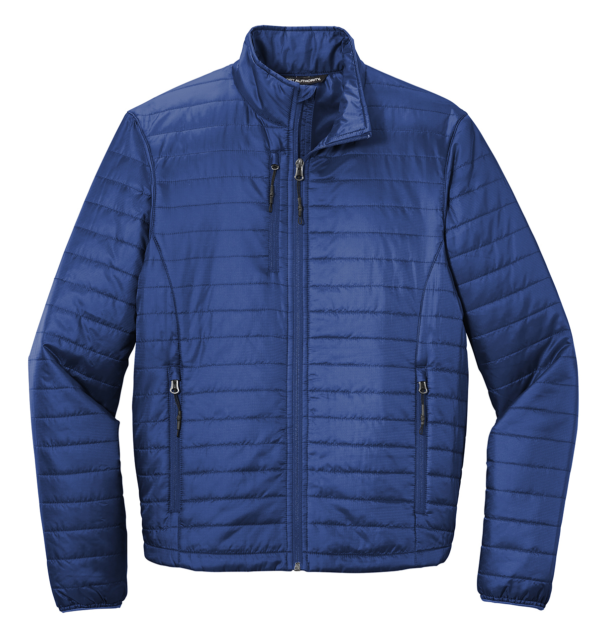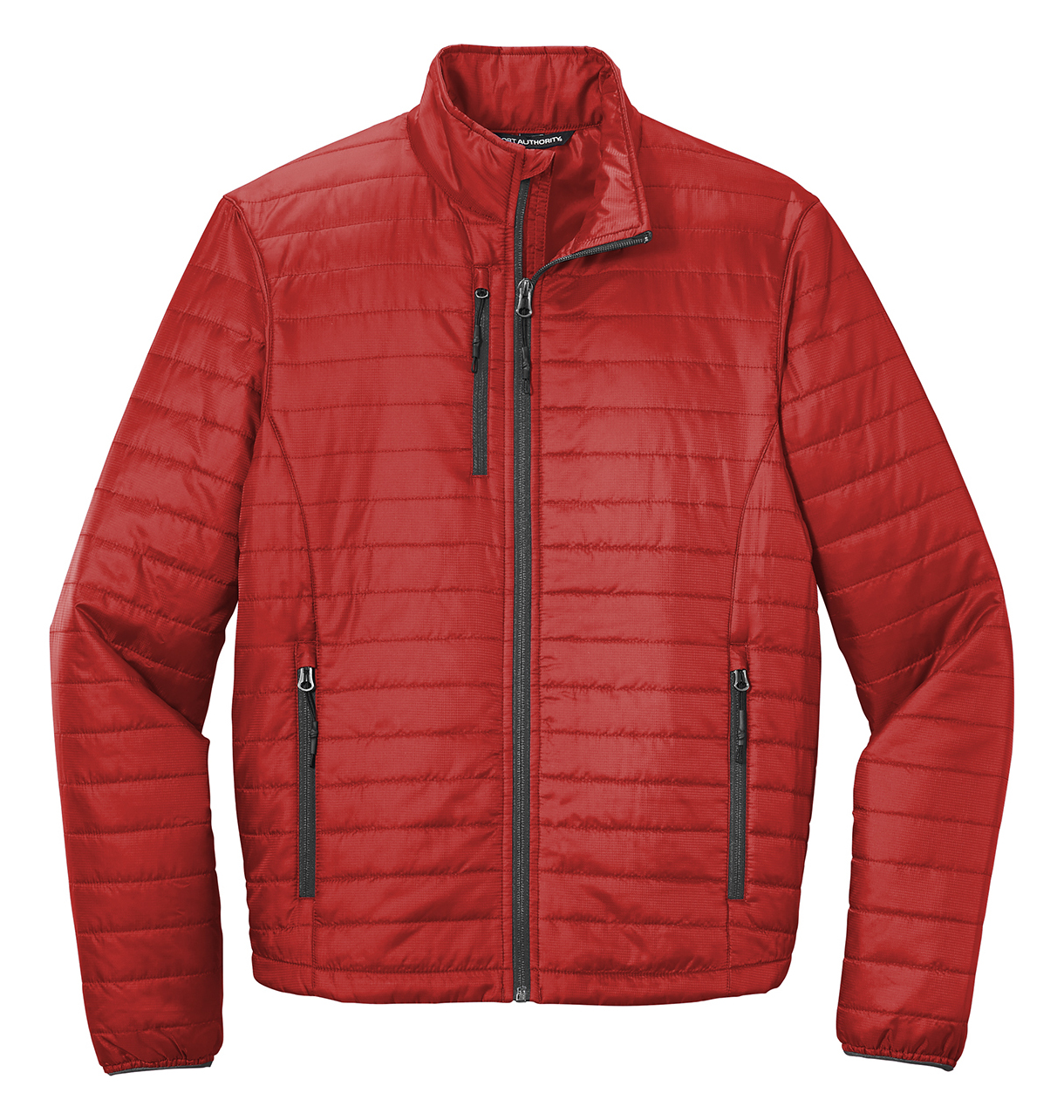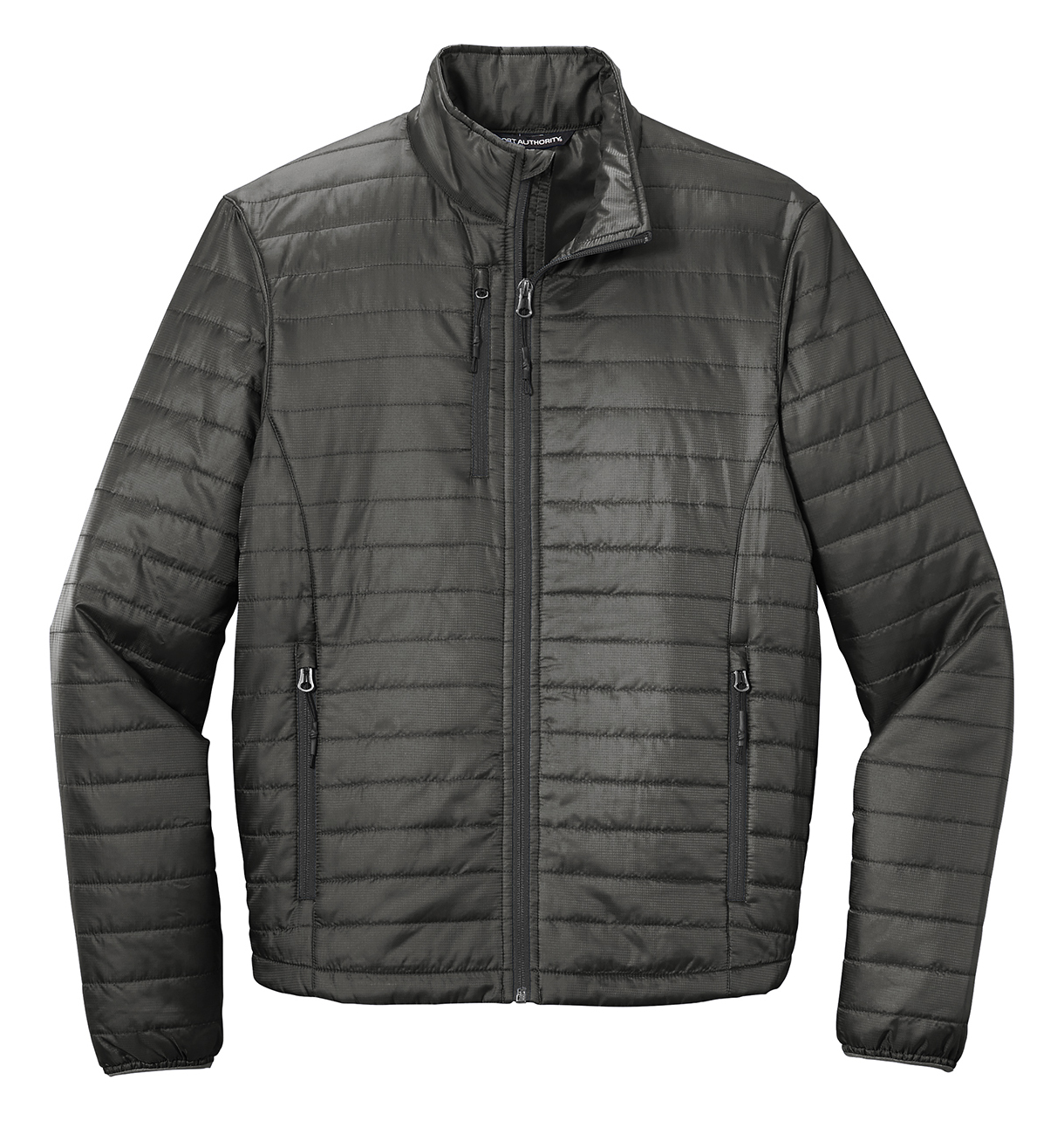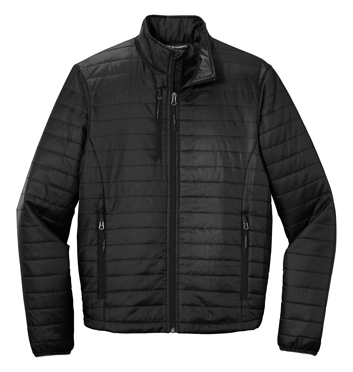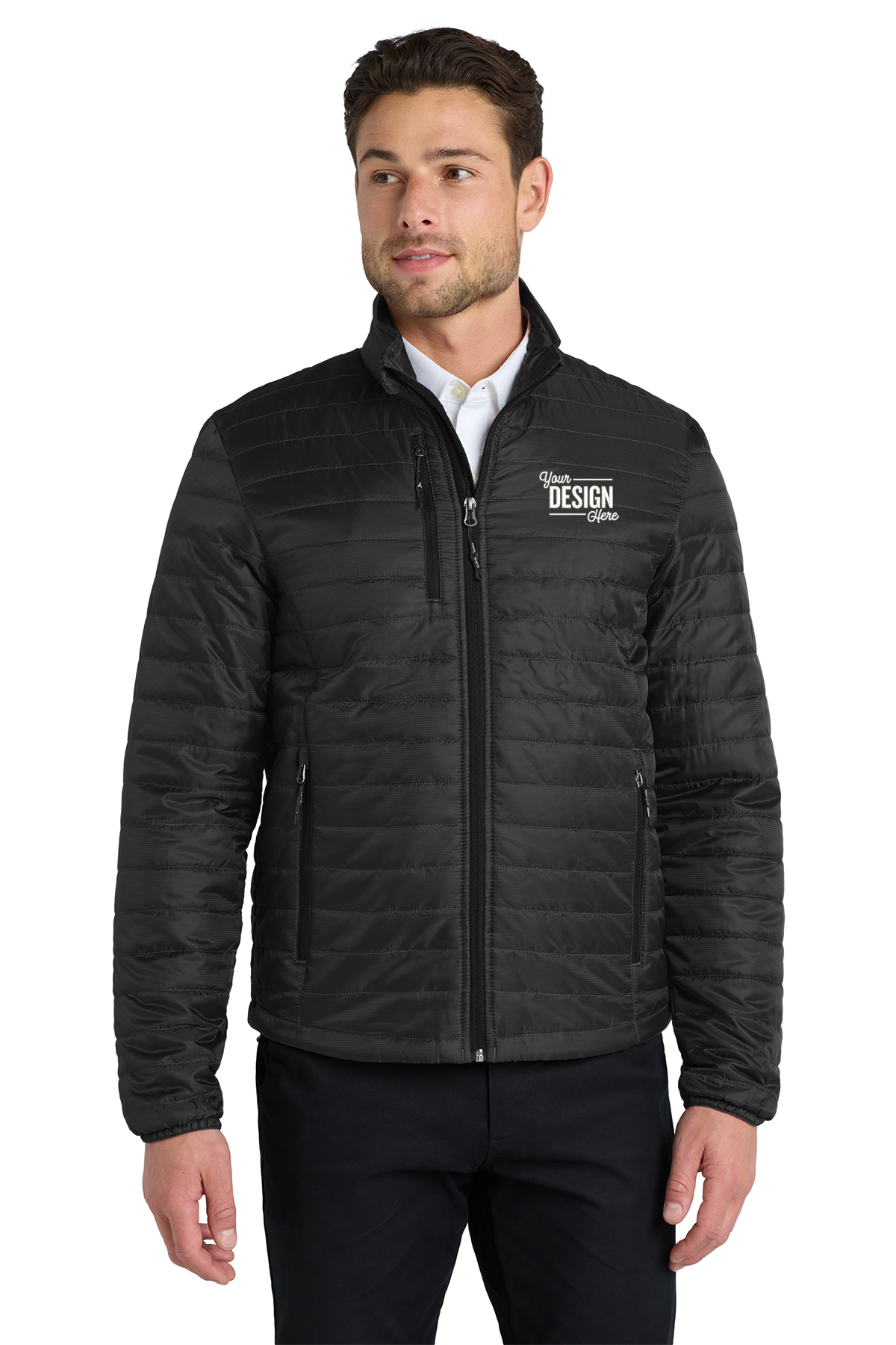 - These Custom Embroidered Port Authority Packable Puffy Jackets make staying warm while on the go easier than ever. Thanks to a water-repellent fabric coating and finish, you'll remain comfortable no matter where your day takes you!
