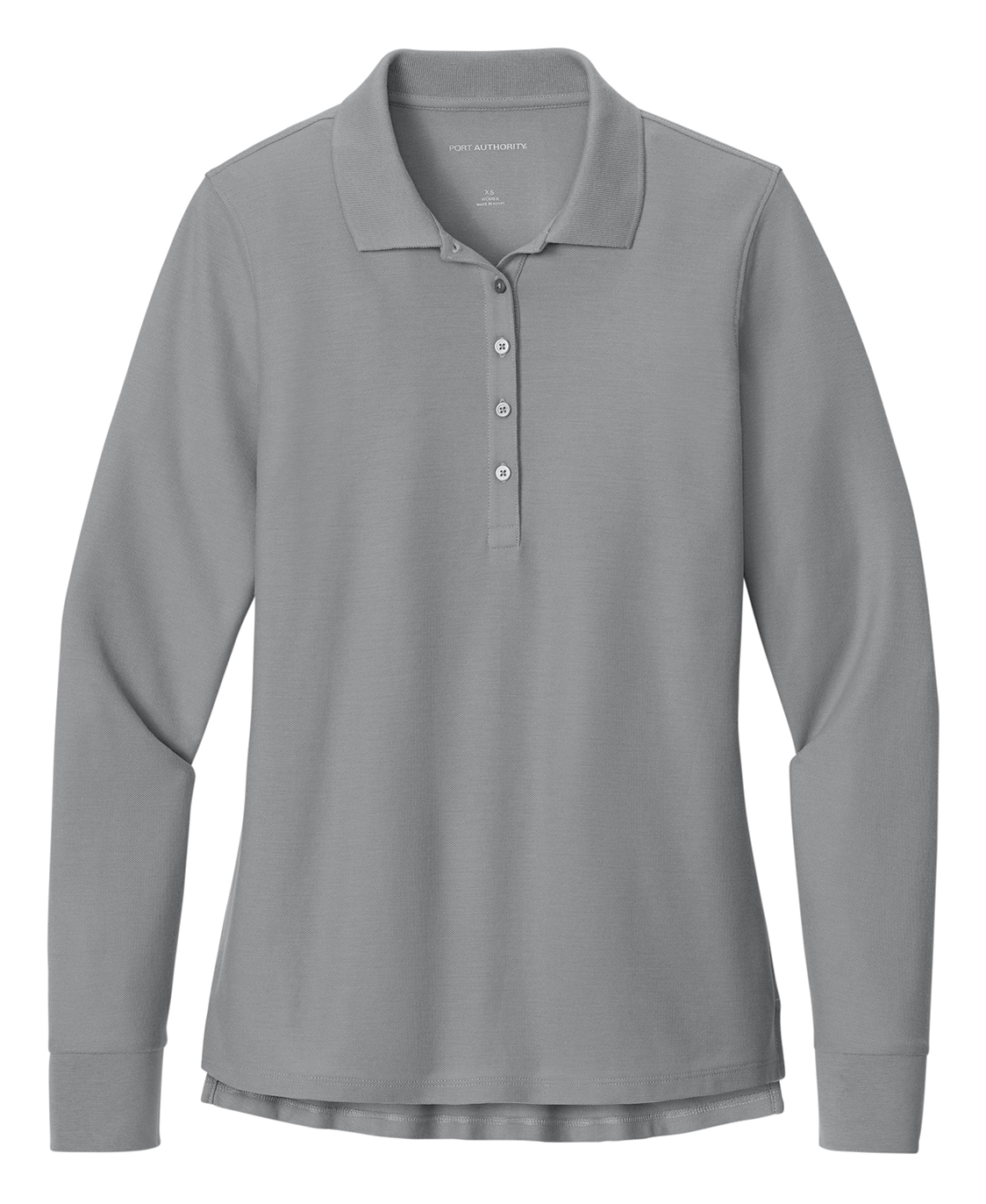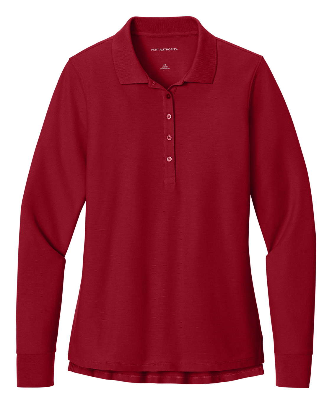 - These Custom Embroidered Port Authority Wearever Signature Pique Ladies Long Sleeve Polo Shirts are constructed from a silky soft performance material that is durable and affordable. These stylish polo shirts are offered in are offered in 9 vibrant colors to coordinate with your company's branding. This is an economical and comfortable choice for employee apparel.