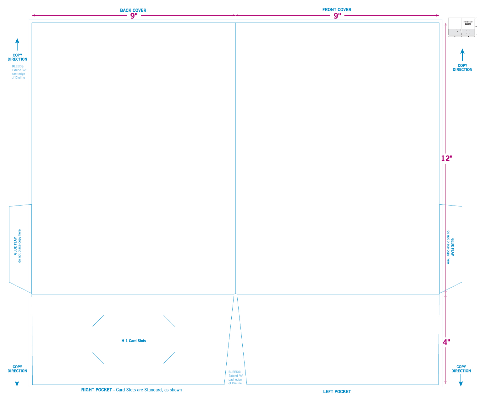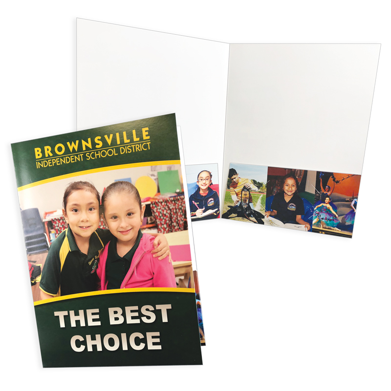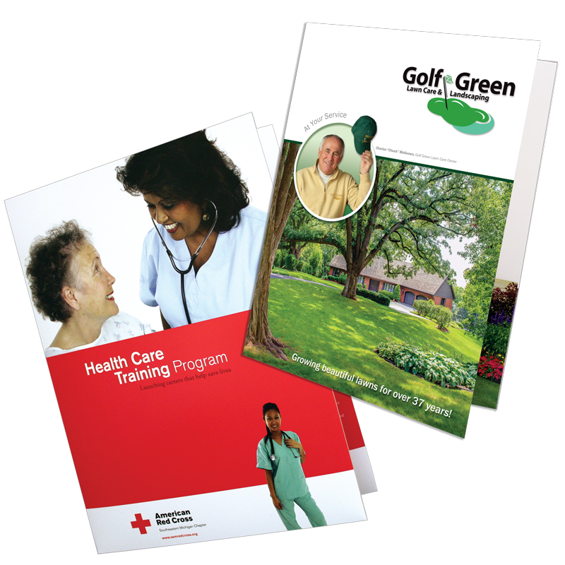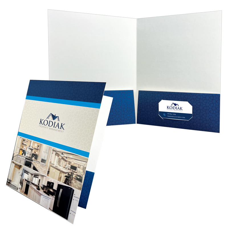 - This listing is for fully custom printed document folders using offset printing in full color. The price includes your personalized imprint in any location on the front side including the front cover, back cover, and pockets. Back side printing (inside of flap) is available for an additional charge.