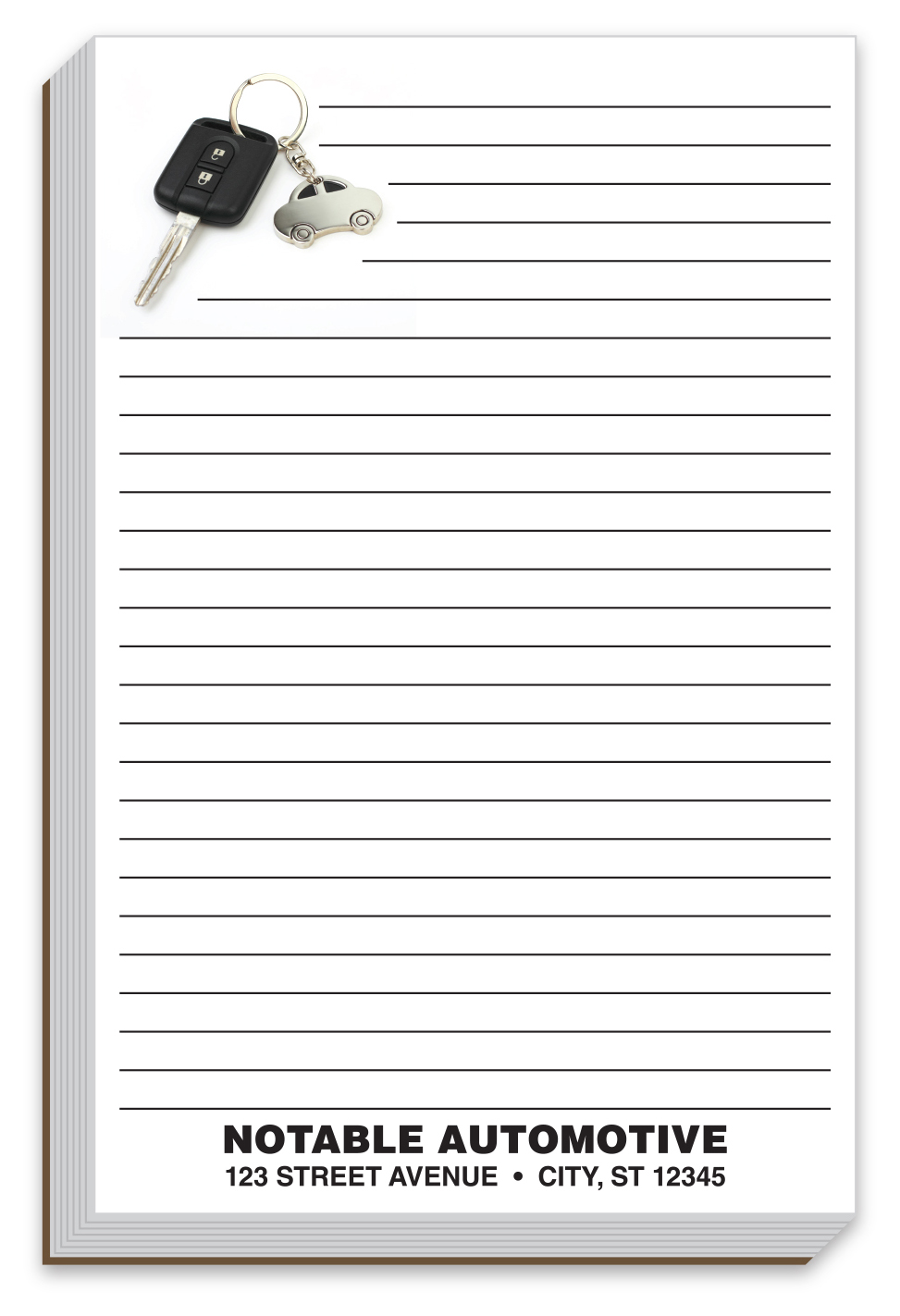 - Custom printed notepads are a great way to promote your business! These notepads are personalized with your car dealership, company or organization's personalized imprint.