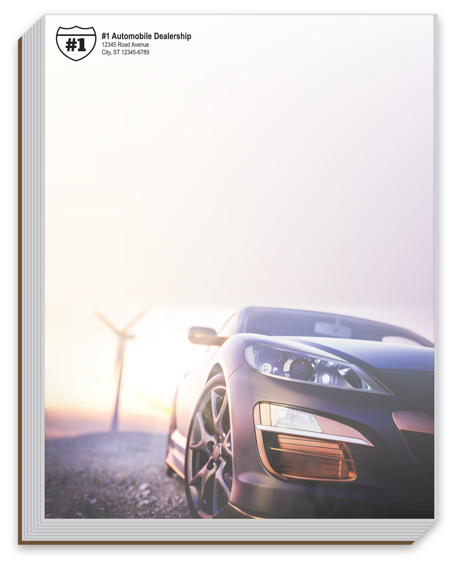 - Custom printed notepads are a great way to promote your business! These notepads are personalized with your car dealership, company or organization's personalized imprint.